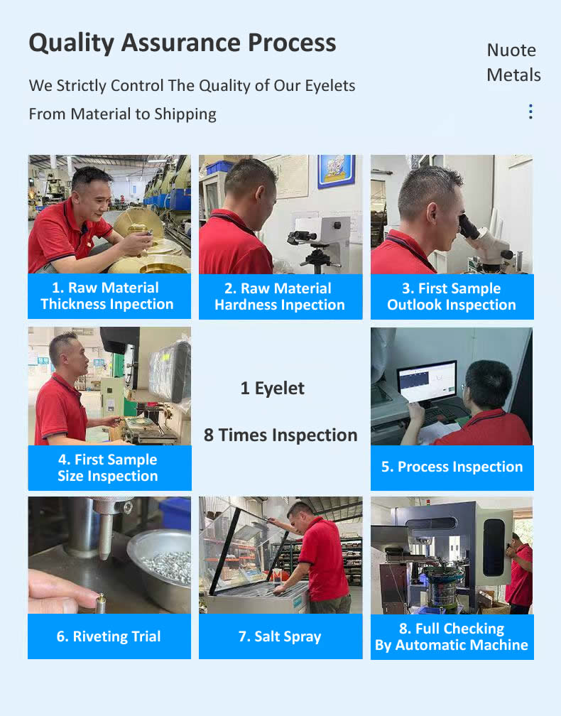 প্রতিটি আইলেট নমনীয় কাপড় এবং ভারী-শুল্ক টেক্সটাইল উভয়ের চাহিদা পূরণ করে তা নিশ্চিত করতে Nuote Metals শুধুমাত্র উচ্চ-মানের পিতলের সংকর ধাতু নির্বাচন করে।
