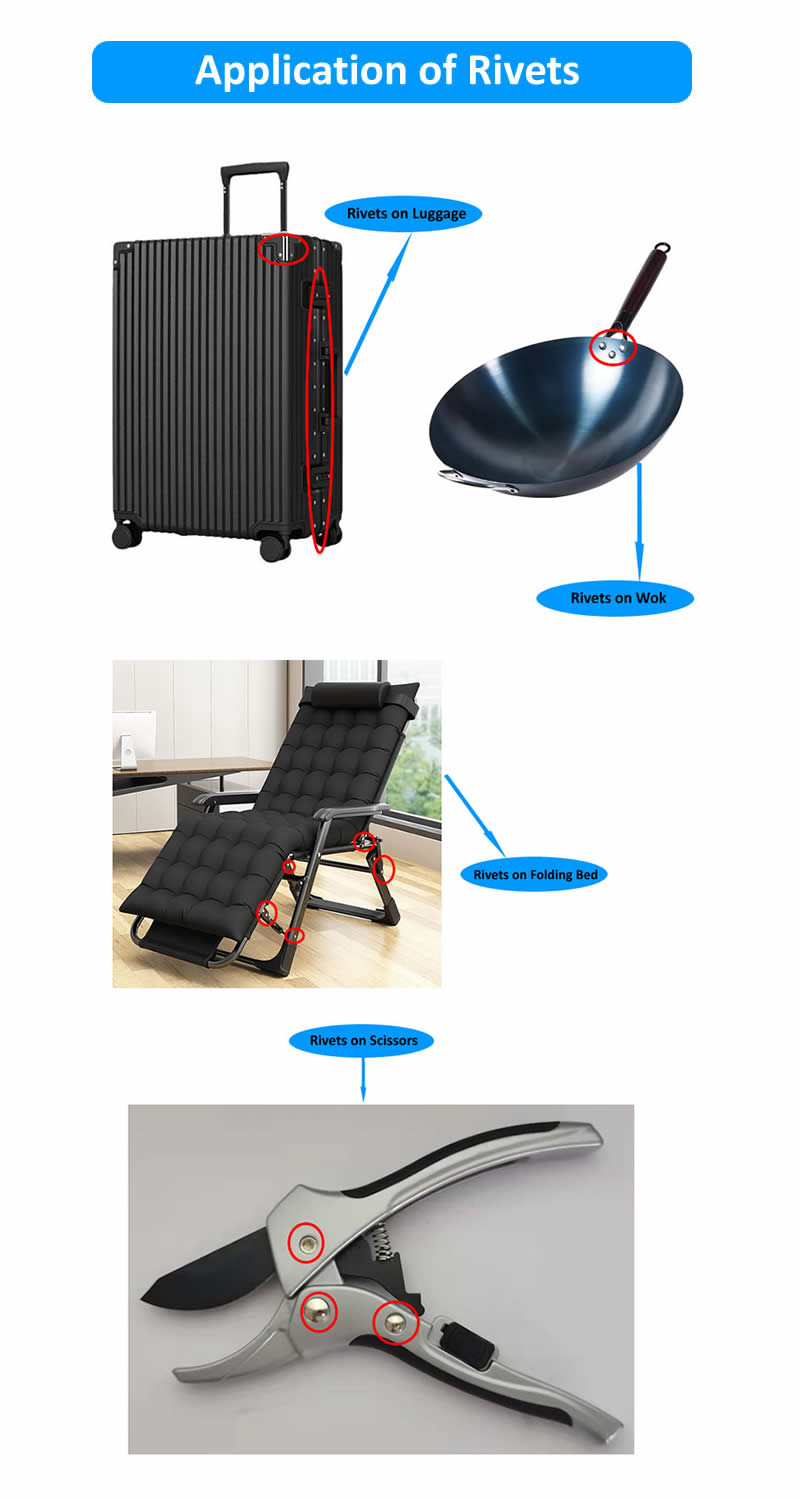 2. গোলাকার মাথার রিভেট, গোলাকার মাথার শক্ত রিভেট এবং গোলাকার মাথার আধা-টিউবুলার রিভেট সহ।