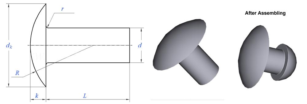 A মাশরুমের মাথা শক্ত রিভেট মাশরুমের মতো একটি গোলাকার, গম্বুজ আকারের মাথা এবং একটি নলাকার শ্যাঙ্কযুক্ত একটি রিভেট।