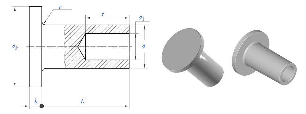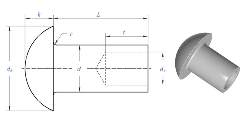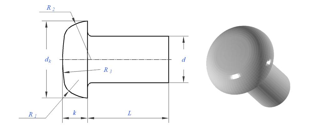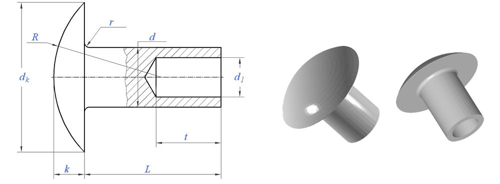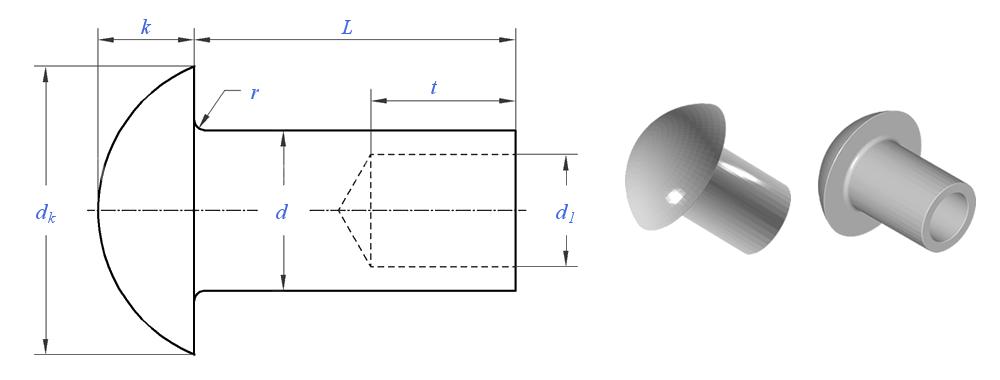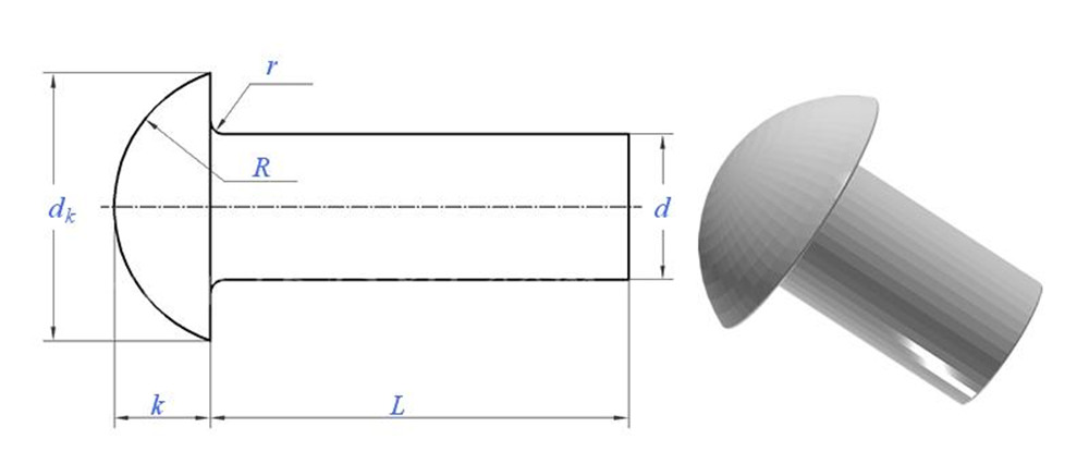 A বৃত্তাকার মাথা আধা-টিউবুলার রিভেট গোলাকার, গম্বুজ আকারের মাথা এবং আংশিকভাবে ফাঁকা শ্যাঙ্ক সহ এক ধরণের রিভেট।