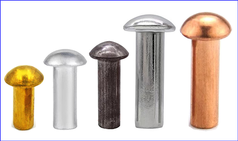 রাউন্ড হেড: একটি বৃত্তাকার মাথা রিভেট একটি সহজ এবং বহুমুখী শৈলী। এর বৃত্তাকার শীর্ষ পৃষ্ঠটি প্রায়শই এমন অ্যাপ্লিকেশনগুলিতে ব্যবহৃত হয় যেখানে নান্দনিকতা কম গুরুত্বপূর্ণ।রাউন্ড হেড রিভেটস কাঠামোগত এবং শিল্প অ্যাপ্লিকেশনগুলিতে ব্যবহৃত হয়।