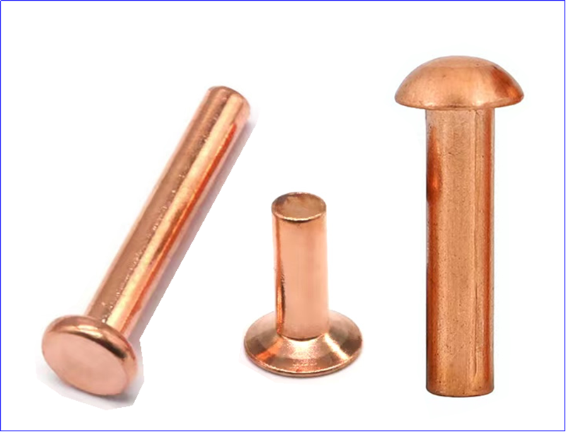 তামা:কপার rivets তাদের দুর্দান্ত বৈদ্যুতিক এবং তাপ পরিবাহিতা জন্য পরিচিত। এগুলি বৈদ্যুতিক এবং বৈদ্যুতিন অ্যাপ্লিকেশনগুলিতে ব্যবহার করা যেতে পারে, পাশাপাশি নদীর গভীরতানির্ণয় এবং অন্যান্য অ্যাপ্লিকেশনগুলিতে ভাল তাপীয় কর্মক্ষমতা প্রয়োজন।