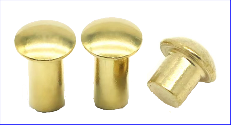 পিতল:ব্রাস রিভেটস একটি আকর্ষণীয় উপস্থিতির সাথে তামাটির বৈদ্যুতিক পরিবাহিতা এবং জারা প্রতিরোধের একত্রিত করুন। এগুলি প্রায়শই গহনা, চামড়ার পণ্য এবং আলংকারিক ধাতব কাজের মতো আলংকারিক অ্যাপ্লিকেশনগুলিতে ব্যবহৃত হয়।